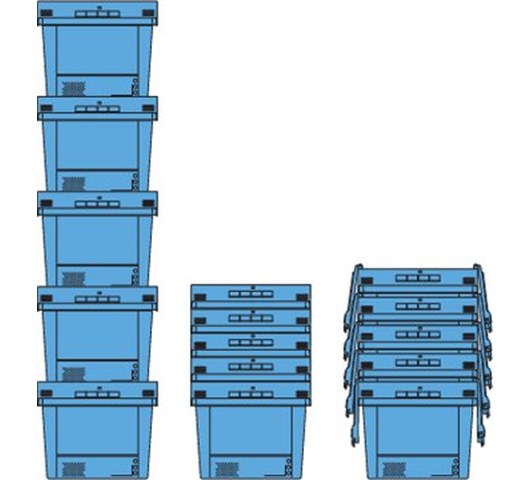 | Tip | Boja | Nosivost | Naslagana nosivost | Volumen | Vanjske dimenzije | Unutarnje dimenzije | Komada / pak | Ref broj | |