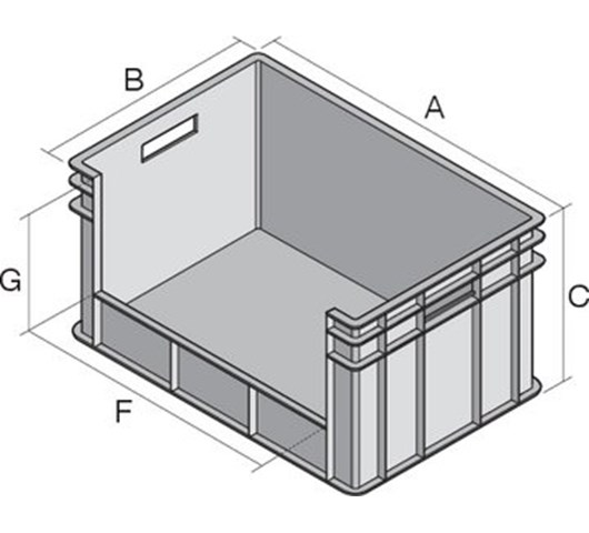 | Tip | Boja | Nosivost | Naslagana nosivost | Volumen | Vanjske dimenzije | Unutarnje dimenzije | Komada / pak | Ref broj | |